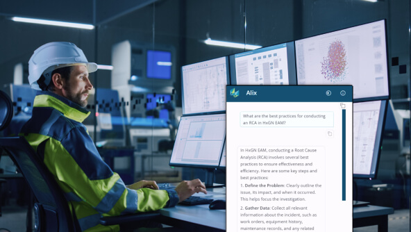 HxGN Alix is your AI-powered assistant for HxGN EAM, providing guidance, insights, and tailored recommendations to optimize asset management processes.